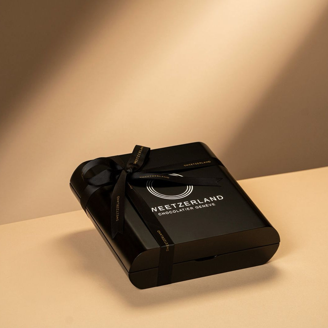يضم صندوقنا المميز إبداعات دار الشوكولاتة الشهيرة - غاناش معطر، وبرالين محضر منزلياً، وكراميل لذيذ. مصنوعة في جنيف باستخدام أجود المكونات، تعكس كل قطعة فن الشوكولاتة الأصيل.